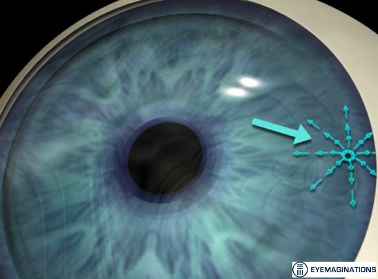 Aquest procediment consisteix a practicar amb un làser una perforació a l'iris per establir una comunicació entre la càmera anterior i la càmera posterior de l'ull, evitant que es tanqui la via de drenatge del fluid intraocular que podria provocar l'augment de la pressió intraocular.