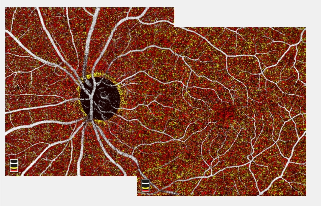 La OCT-A en el glaucoma nos permite hacer una evaluación y seguimiento de la microcirculación del nervio óptico.
